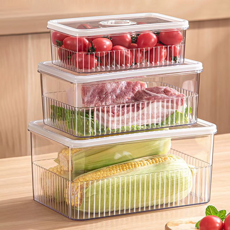 Optimize the usage of your fridge and kitchen cabinets with our refrigerator storage container set which includes three distinct sizes. The thickened material and seal ring add an extra layer of shield, aiding in avoiding cross-flavoring and maintain food freshness.